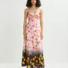El vestido midi, de corte holgado, está confeccionado en viscosa ligera con un sutil acabado texturizado. Las mangas anchas, estilo kimono, con aberturas en la costura inferior, te permiten lucir una elegancia natural, ya sea para bailar, brindar con una copa de champán o simplemente saludar. La falda de corte recto tiene una abertura en el bajo trasero para mayor libertad de movimiento.